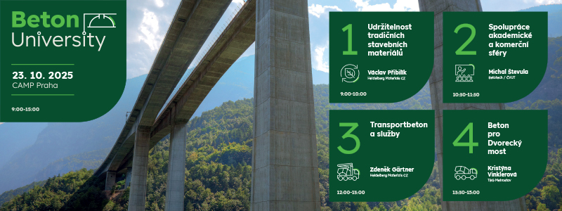 Beton University je platforma pro setkávání odborníků a profesionálů ve stavebnictví, místo pro dialog a příležitost konzultovat své zkušenosti s předními odborníky. Projekt je zařazen do akreditovaného vzdělávacího programu v rámci celoživotního vzdělávání pro členy ČKAIT a ČKA.
