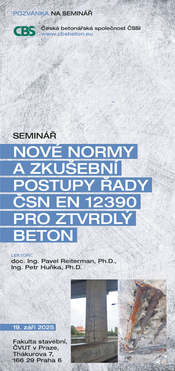 Seminář navazuje na předchozí kurzy zaměřené na zkoušení ztvrdlého betonu a rozširuje je o nové metody a zkušební postupy, které byly do normové řady ČSN EN 12390 nedávno doplněny. Obsah semináře je zaměřen na detailní popis těchto zkušebních postupů včetně způsobu interpretace získaných výsledků. Součástí semináře bude i ukázka příslušných laboratorních zařízení.