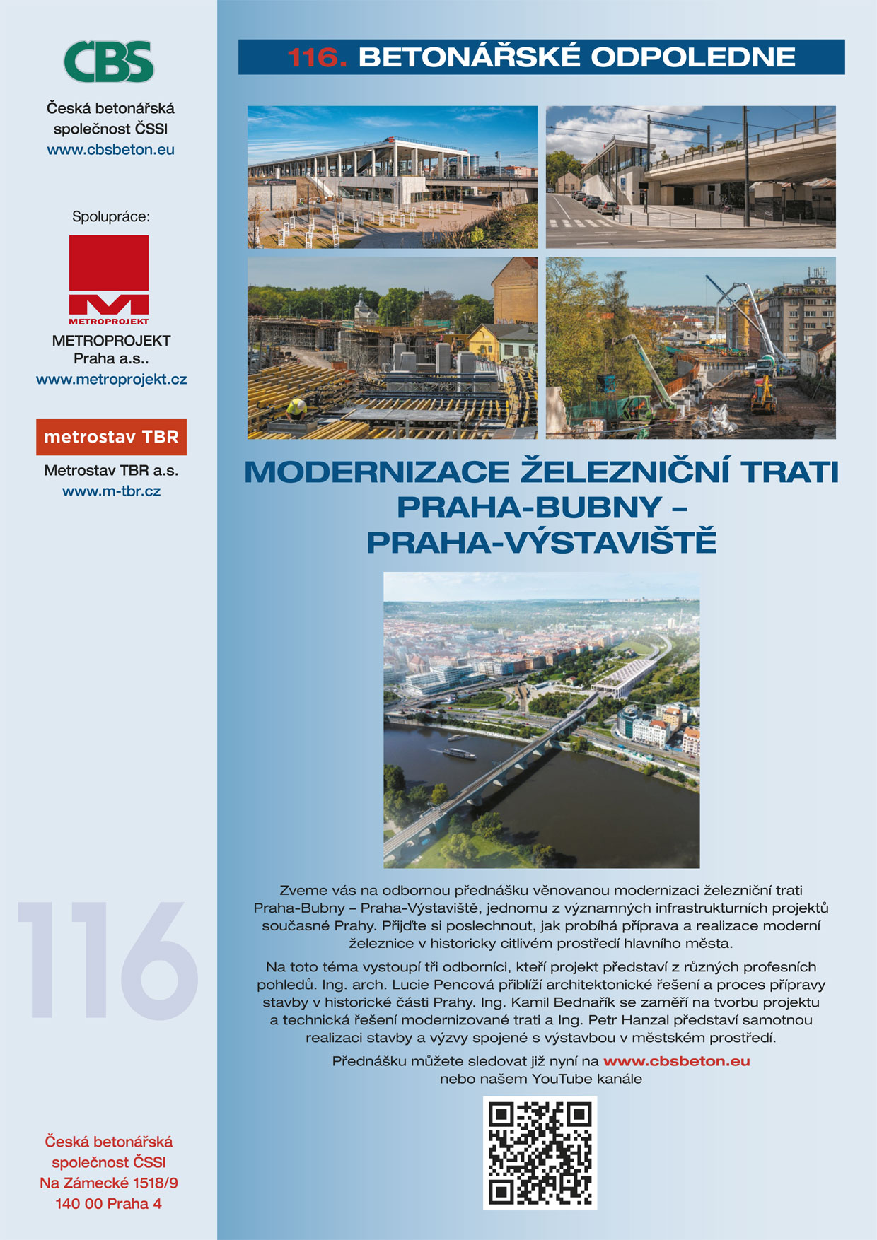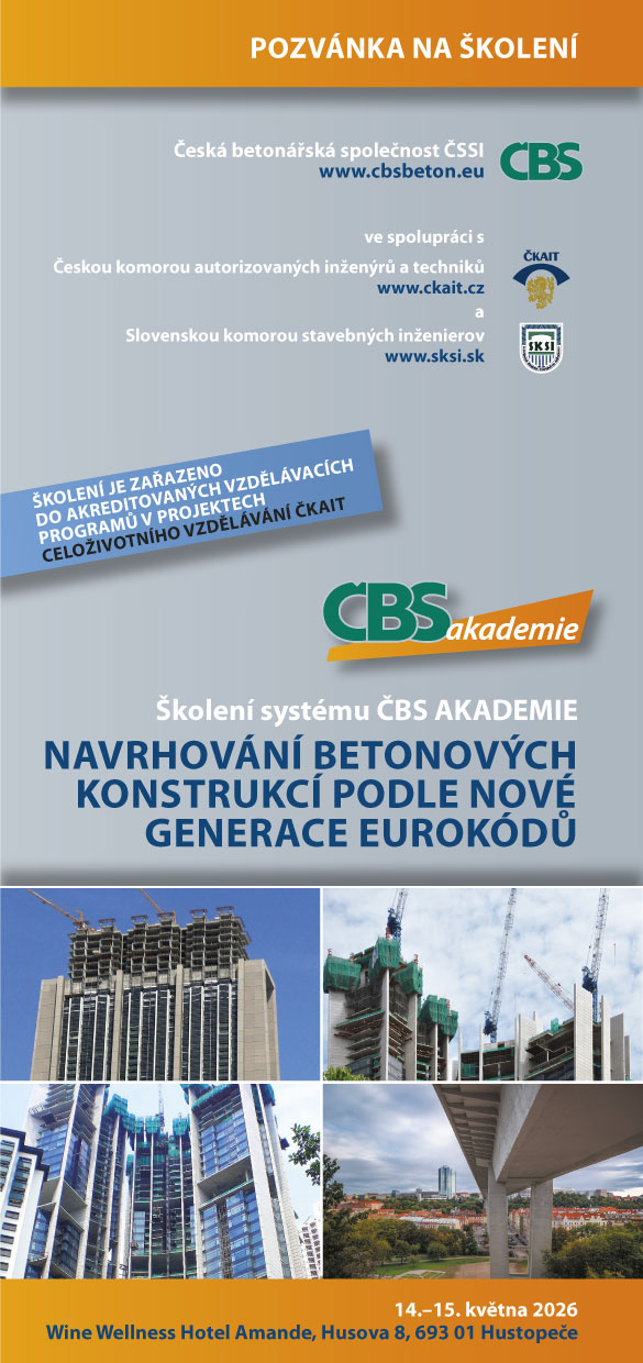 Česká betonářská společnost pořádá další běh školení, kde předmětem je nová generace Eurokódu pro navrhování betonových konstrukcí. Cílem je seznámit účastníky se základními rozdíly proti současnému Eurokódu, zdůvodnění nových postupů a příklady aplikace nových pravidel.