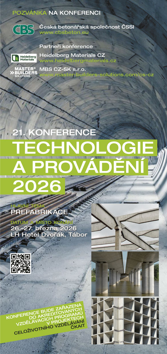Vědecký výbor vyzývá k zaslání anotace odborného příspěvku na výroční 21. konferenci Technologie a provádění 2026, hlavní téma pro letošní ročník je Prefabrikace.